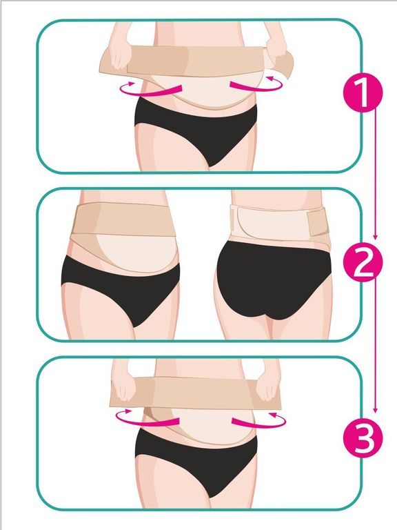 Универсальный бандаж используется во время беременности и после родов. Для снятия нагрузки с позвоночника банадаж усилен дополнительной деталью. Боковые застежки "велькро" позволяют регулировать степень утягивания пояса, не снимая его. Во время беременности бандаж рекомендуют носить для максимальной поддержки и разгрузки спины, и поддержки под животом. После родов - для восстановления формы живота.