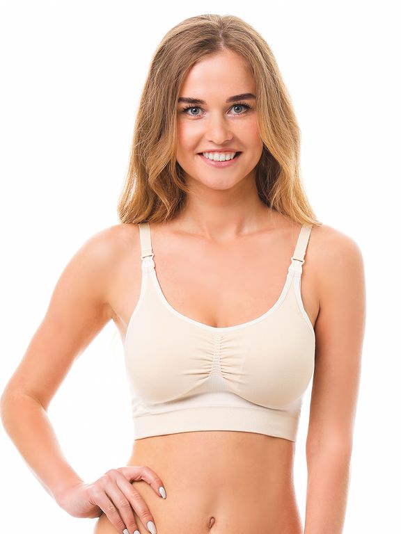 Бюстгальтер двухслойный, на внутренних чашках по бокамимеются вырезы для съемных формованных вкладышей. Формованный вкладыш обеспечивает усиленную поддержку и придает груди красивую форму. Во время кормления вкладыш можно достать и сделать чашку мягкой для более удобного кормления ребенка.