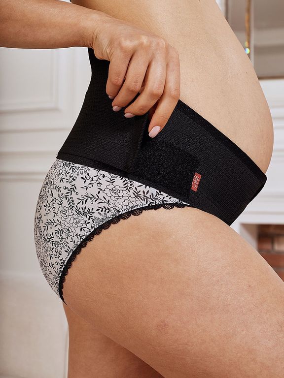 Универсальный бандаж используется во время беременности и после родов. Для снятия нагрузки с позвоночника банадаж усилен дополнительной деталью. Боковые застежки "велькро" позволяют регулировать степень утягивания пояса, не снимая его. Во время беременности бандаж рекомендуют носить для максимальной поддержки и разгрузки спины, и поддержки под животом. После родов - для восстановления формы живота.