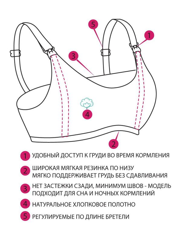 Эластичный хлопок хорошо поддерживает грудь, подстраиваясь под естественные изменения тела во время беременности и после родов.